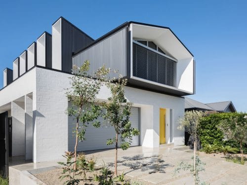 The existing two front rooms of this working cottage were retained, whilst a new double storey contemporary addition was added to the rear. The large sliding door opening along the length of the kitchen, opens up to the rear courtyard creating a true open plan living area. The sunken living room adds to the drama and special feel of the house, along with the timber veneer and off form concrete finishes.